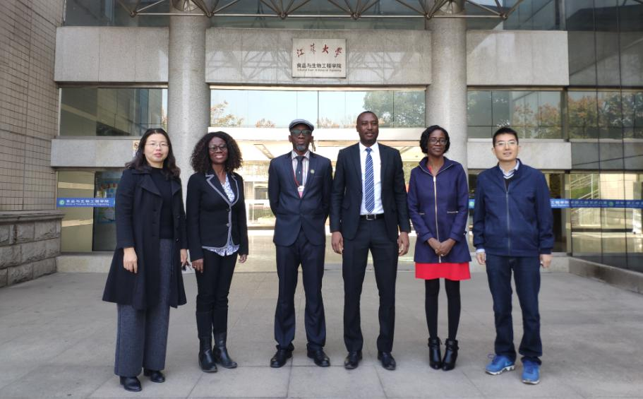 On Friday 15th November 2019, three delegates (Acting Director, International and External Relations, Dean of Faculty of Engineering and IT and Assistant Director, Human Resources) from the University of Namibia visited School of Food and Biological Engineering, Jiangsu University. Prof. Zhou Cunshan, director of department of Food Science and Engineering showed foreign guests around the Vegetable dehydration technology integration base of Ministry of Agriculture and introduced fruit and vegetable dehydration production line, mainly include: cleaning, dry blanching, 3D cutting, catalytic infrared drying, sorting, color selection, electro thermal steam sterilization, powder packaging and intelligence storage.