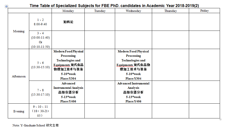 2018-2019(2)Time Table of Specialized Subjects for PhD. FBE candidates in Academic Year