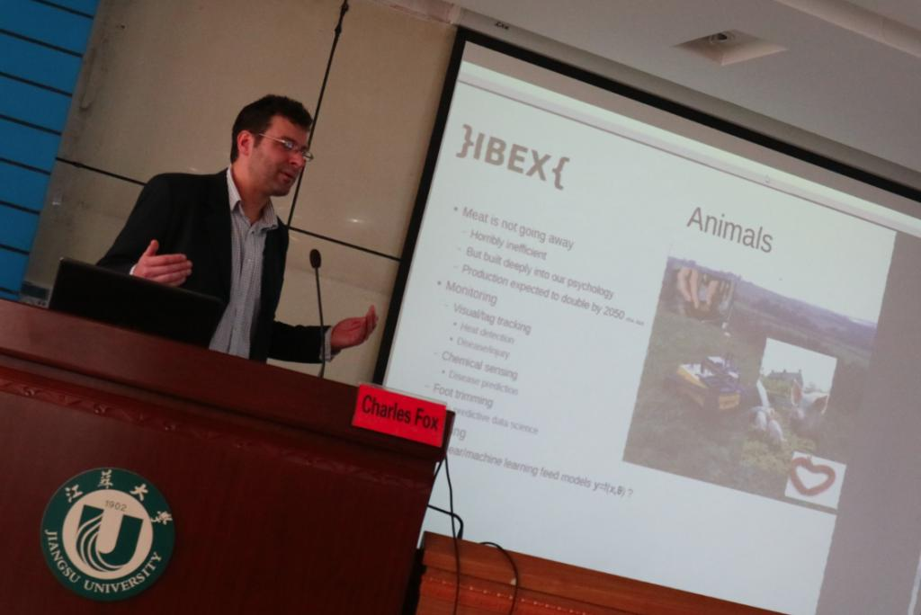 On Nov. 27, Dr. Charles Fox from University of Leeds visited Jiangsu University. Zou Xiaobo, dean of School of Food and Biological Engineering, introduced Dr. Fox. Prof. Charles Fox delivered an academic lecture named Automating agriculture.