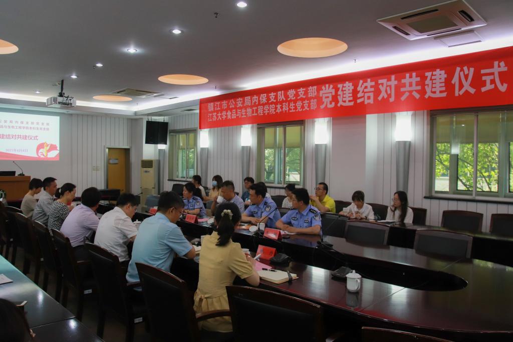 本科生党支部举办党建结对共建仪式。镇江市公安局内保支队三级高级警长金家银,内保支队副支队长张弛,内保支队办公室主任接子纯,内保支队文保大队大队长李挺,5G影院
