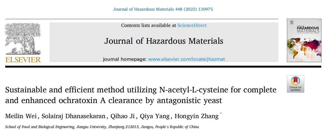 张红印教授团队在国际顶级期刊Journal of Hazardous Materials(中科院一区)发表题为“Sustainable and efficient method utilizing N-acetyl-L-cysteine for complete and enhanced ochratoxin A clearance by antagonistic yeast”的研究论文(2023,448,15),研究了抗氧化剂N-乙酰-L-半胱氨酸对隐球酵母Y3降解赭曲霉毒素A的促进作用以及对酵母自身代谢的影响。5G影院