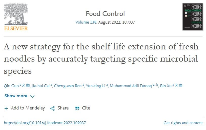 徐斌教授在Food Control在线发表题为“A new strategy for the shelf life extension of fresh noodles by accurately targeting specific microbial species”,首次针对生鲜面中优势靶标菌株开发出新型保鲜剂。采用该方法可以提高生鲜面的保鲜准确性和保鲜效率。5G影院