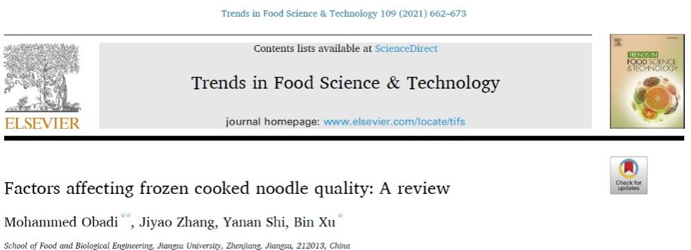近日,我院徐斌教授课题组标题为“Factors affecting frozen cooked noodle quality: A review”(影响冷冻熟面品质的因素:综述)的综述文章在国际食品领域TOP期刊(No.1)《Trends in Food Science & Technology》发表。5G影院