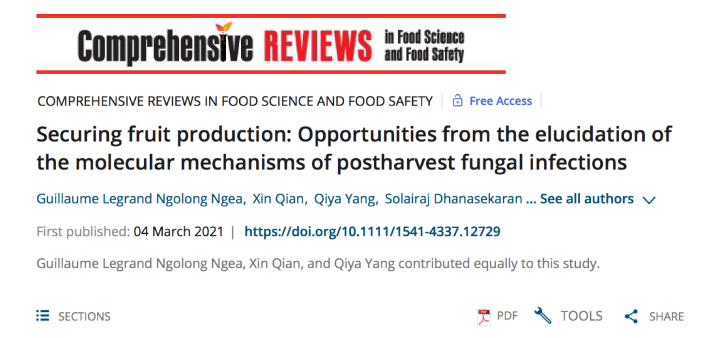 根据世界卫生组织(WHO)的报告指出,水果消费与健康生活息息相关。而由于含水量高,水果对真菌的侵染非常敏感。全球的最新统计数据显示,每年约有25%的水果和蔬菜在生产领域和采后链上损失掉,且大都是由真菌病害造成的。致病性霉菌造成的危害和风险导致水果不可食用,且引起的感染导致新鲜水果的品质发生了很大的变化。具有产真菌毒素能力的霉菌在侵染果实时还往往会生成真菌毒素。真菌感染水果的过程通常从空气、昆虫、土壤颗粒、收获工具、工人的手等携带的孢子到达水果表面开始。散布在环境中的真菌的孢子,当它们感受到良好的生长条件时就会发芽。真菌对信号的感知是感染过程成功的关键,它整合了乙烯、光和pH的传感。在适当的环境刺激下,真菌孢子通过复杂的分子机制整合感染信号。细胞内的信号传递通常是通过各种特定的信号途径进行的。