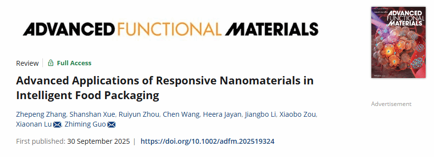 近日,我院郭志明教授团队在国际Top期刊《Advanced Functional Materials》(Q1,IF2024: 19)上发表论文“Advanced Applications of Responsive Nanomaterials in Intelligent Food Packaging”。博士研究生张浙鹏为第一作者,5G影院