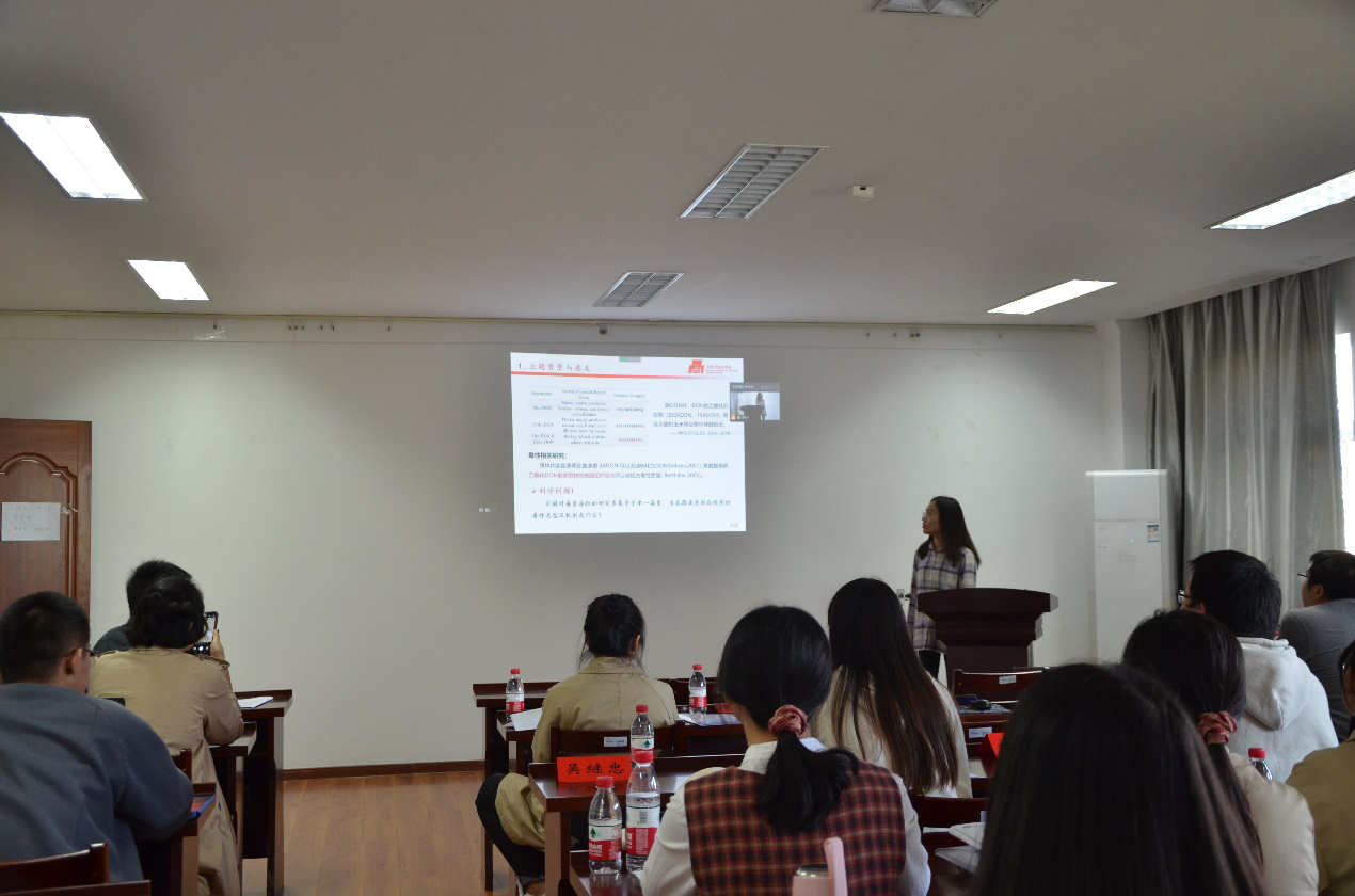 食品质量安全检测、食品品质安全控制以及食品智能加工技术三个分论坛分别由石吉勇教授、郭志明副教授和张迪副教授主持同时进行。会场上,来自江苏省12所高校的50位研究生代表分别就自己的研究课题进行ppt汇报,与会人员和汇报学生凝聚共识、相互启发,展开了热烈研讨。