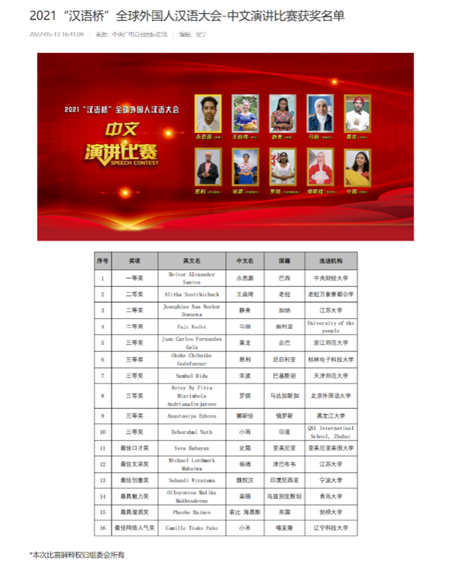 近日2021“汉语桥”全球外国人汉语大会-中文演讲比赛决赛落下帷幕,5G影院