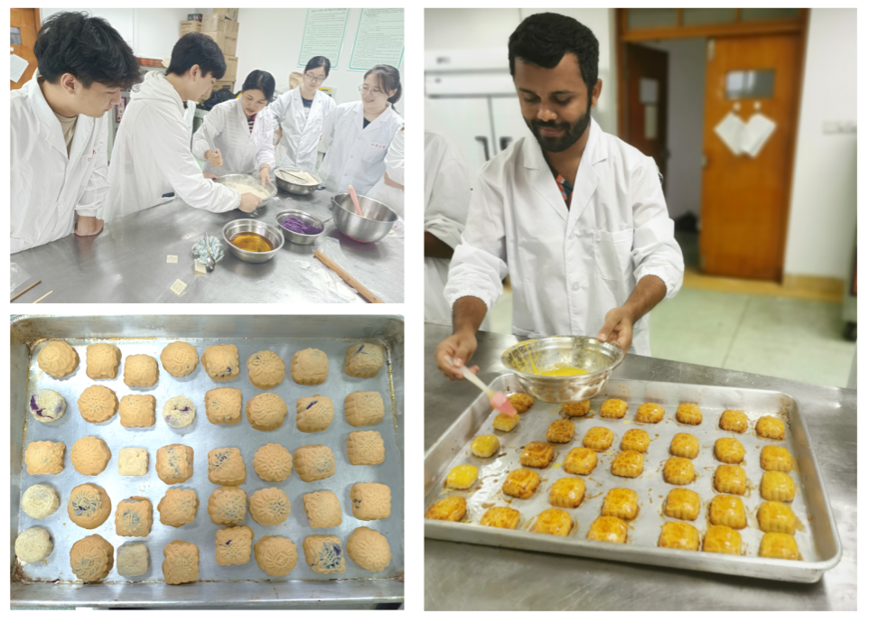 在食品楼412烘焙室组织开展了“做月饼 话中秋”文化体验活动。来自斯里兰卡、加纳、马来西亚、印度尼西亚、巴基斯塔、摩洛哥、孟加拉国、尼日利亚等国的2023级来华留学研究生新生与国内本科生一同参加了本次活动,感受浓浓的节日氛围。食品系刘杏荣老师进行全程指导。
