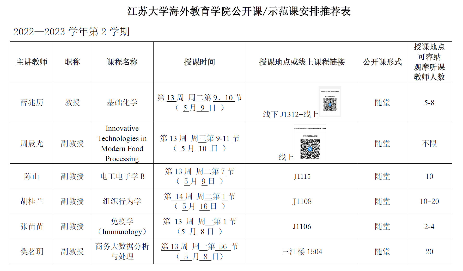 动员、组织教师在线上或线下观摩海院英文公开课。海院英文公开课安排如下图所示: