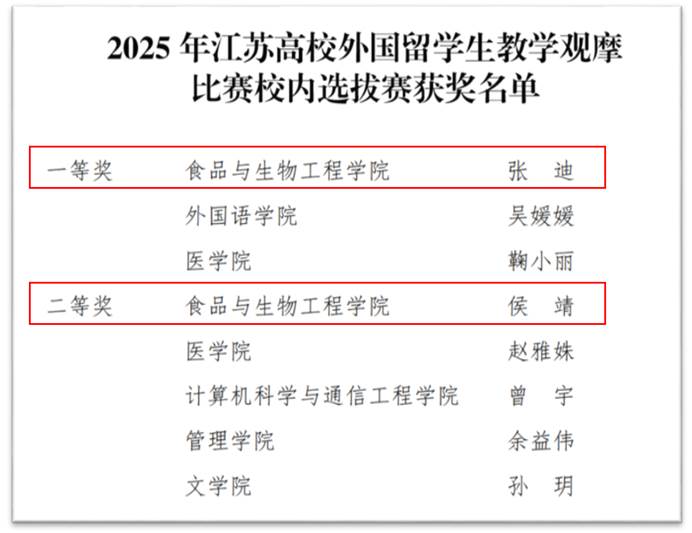 经过专家评审,张迪老师荣获本科理工组一等奖,侯婧老师获得二等奖,两位教师均被推荐参加2024年江苏高校外国留学生教学观摩比赛省级赛事,展现了5G影院 在国际化教学领域的综合实力和教师队伍的专业素养。