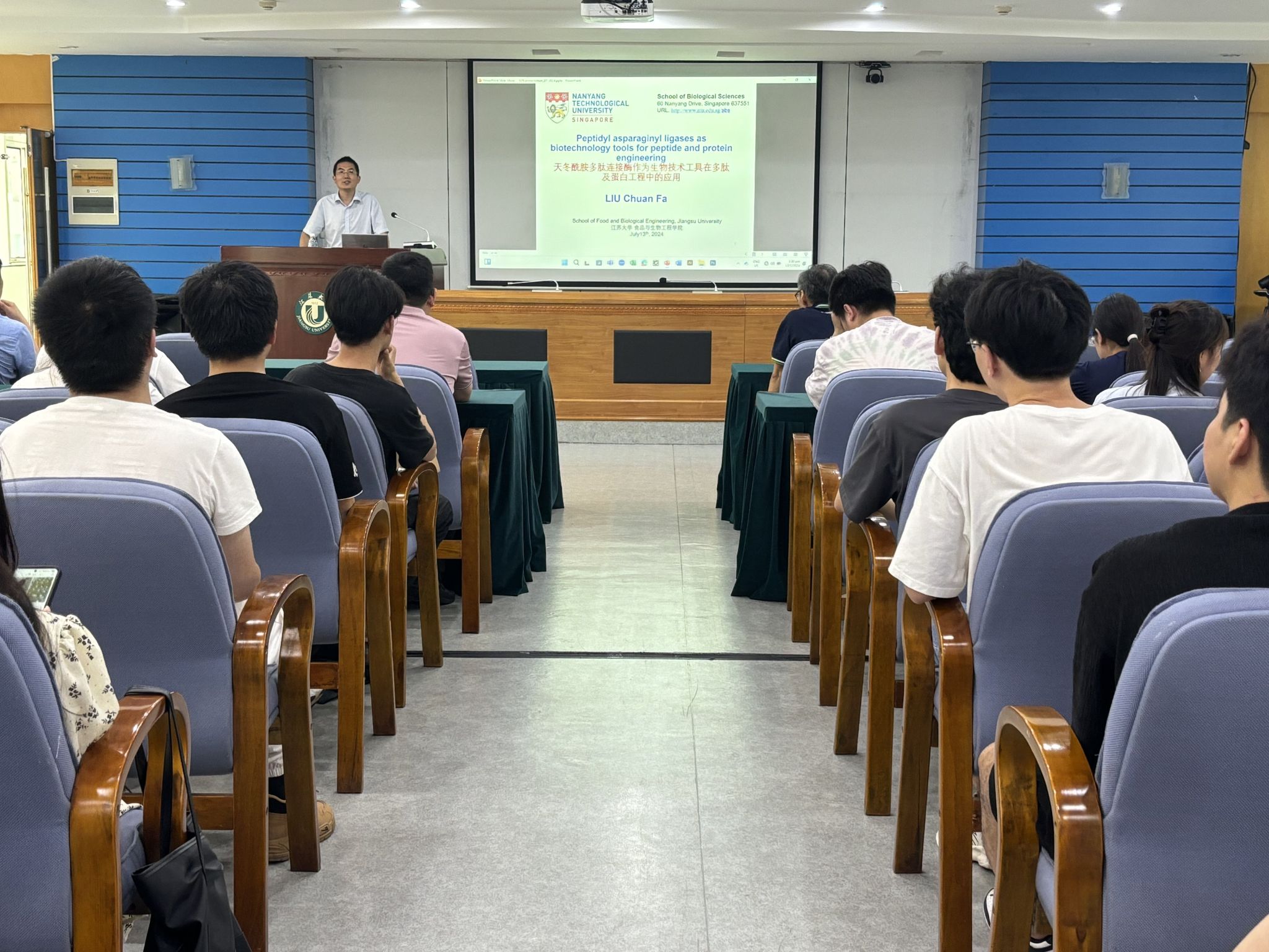2024年7月13日下午,应5G影院 的邀请,新加坡南洋理工大学Liu ChuanFa教授在会议中心第三报告厅进行了关于“多肽与蛋白质的合成、修饰”的学术报告。报告由5G影院 副院长周存山主持,吸引了众多教师、研究生和留学生参加。