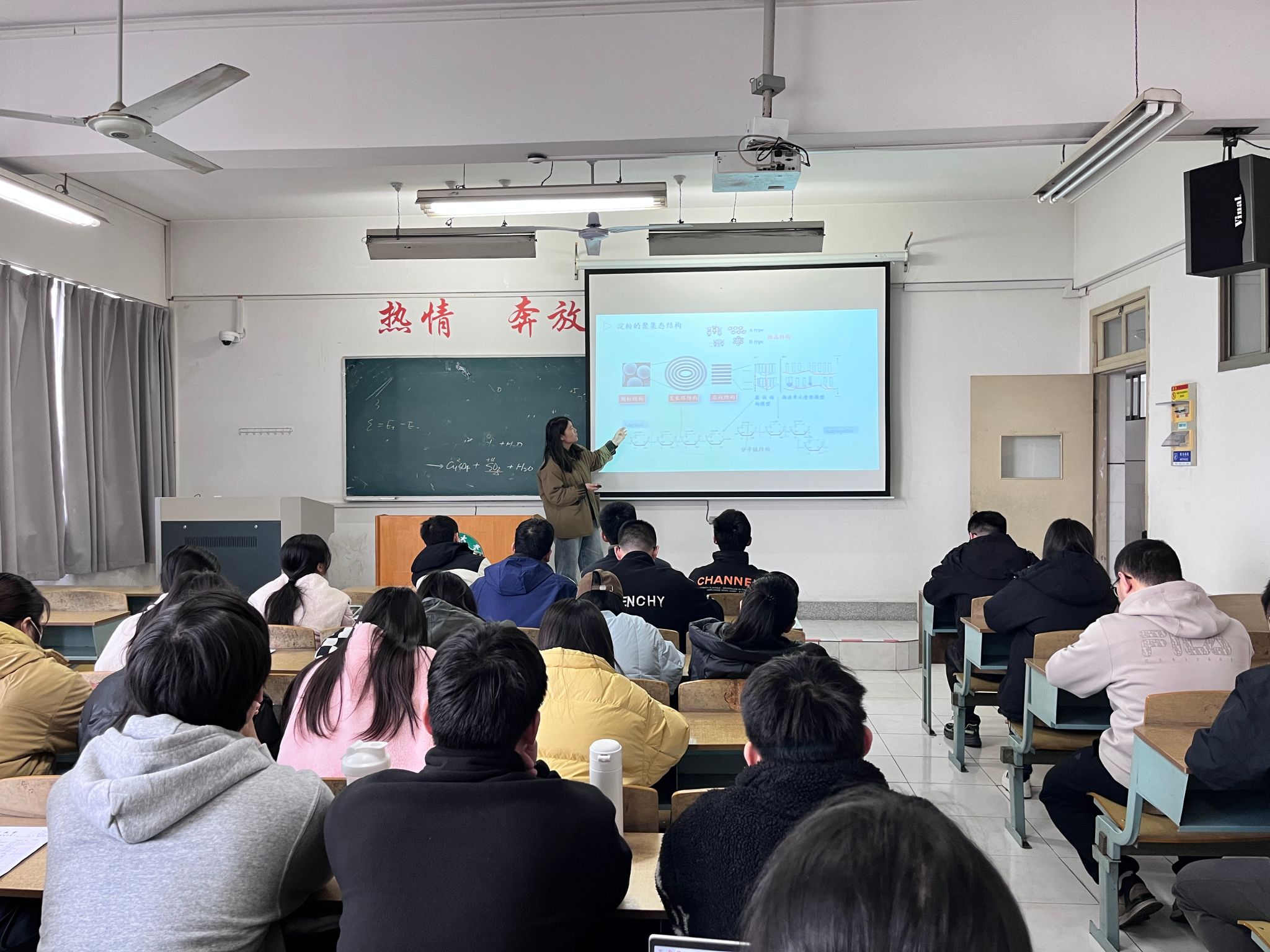 在主A楼304举行了2024年第四次青年教师学术交流会,学院陈瑾老师应邀作主题为“离子液体系对淀粉分子链运动行为调控的研究分享”的报告。学院青年教师代表和部分研究生共50余人参加了会议。
